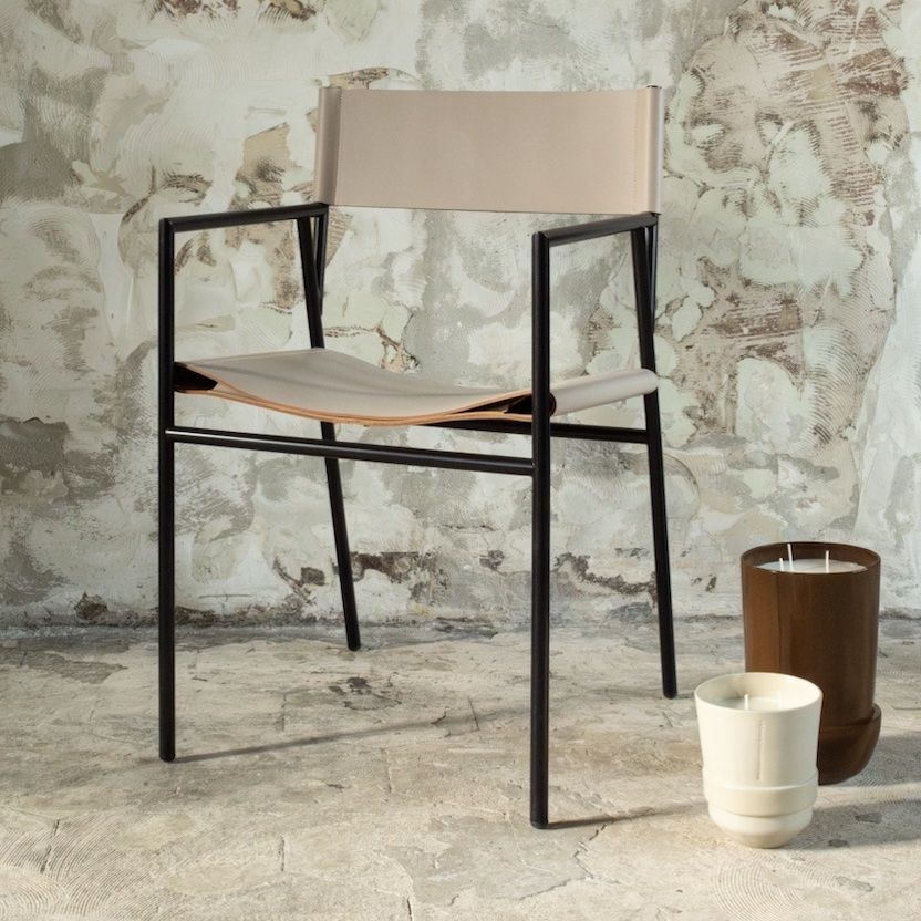 Two folded sheets of saddle leather are affixed to the armchair's metal frame in a design that perfectly adapts to the sitter's body to ensure comfort.