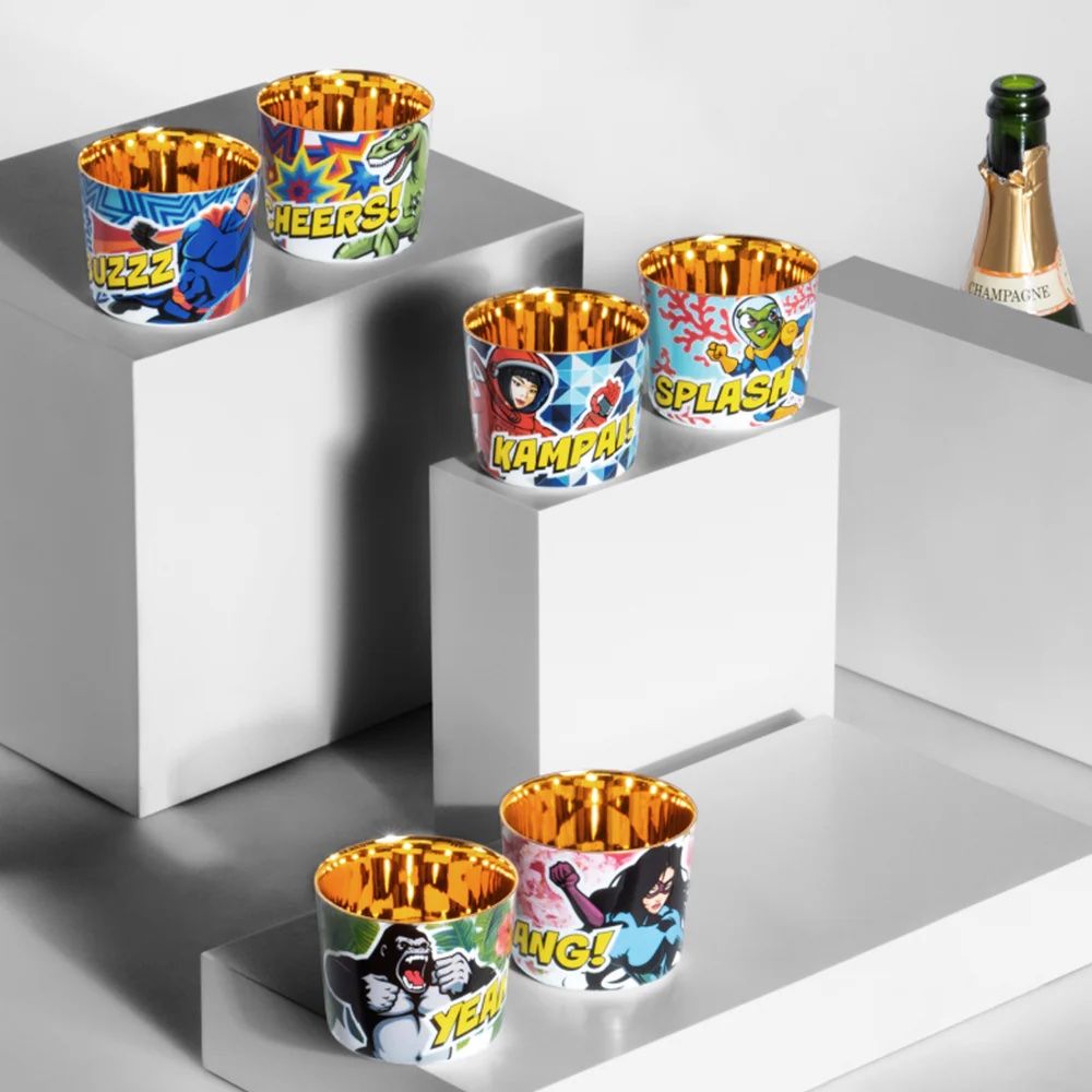 The champagne goblets is a combination of wafer-thin porcelain and the finest precious metal.