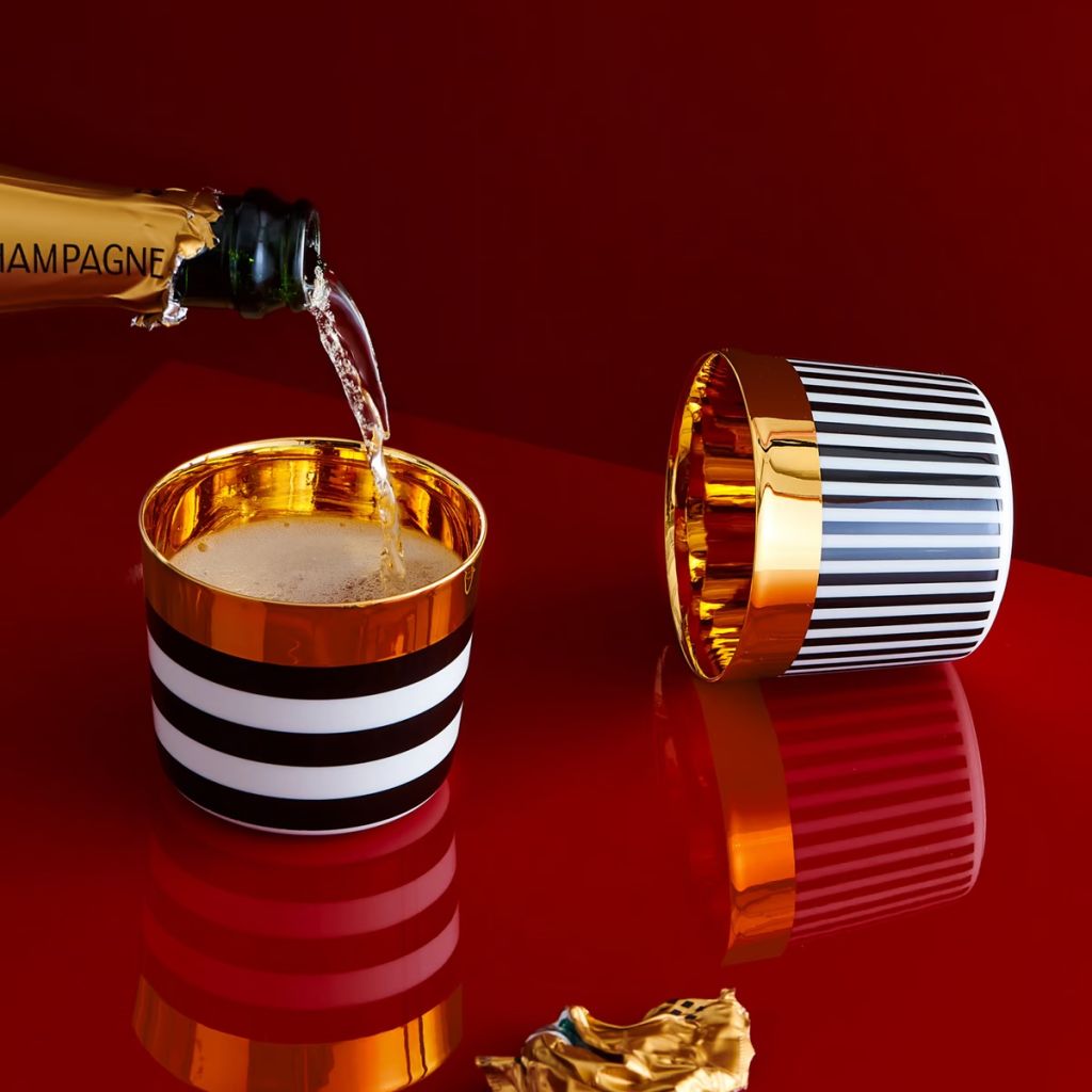 The champagne goblets is a combination of wafer-thin porcelain and the finest precious metal. The goblets are just as appealing to drink from as they are to look at: delicate and wafer-thin, with a wall thickness of around two millimeters.