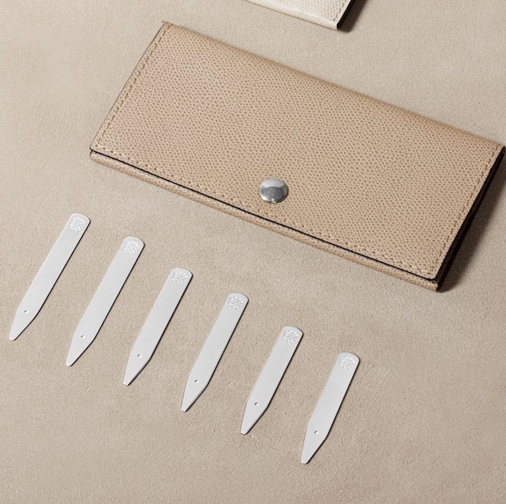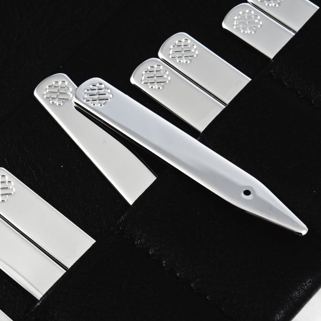 It includes six pairs (in three different sizes) of brass collar stays with palladium-plated finishing.