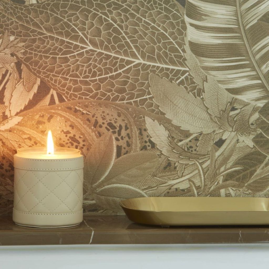 Candle holder, quilted diamonds padded leather, with removable scented candle.