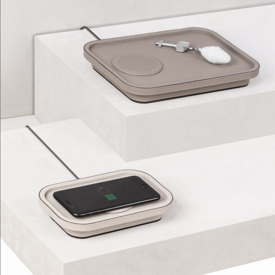 A wireless Certified Qi standard charger, adopted by the largest mobile devices manufacturer, is integrated on the top Supplied complete with USB type A cord + mobile charger with 4 plugs: 2P Euro, BS, USA, Australia-C.