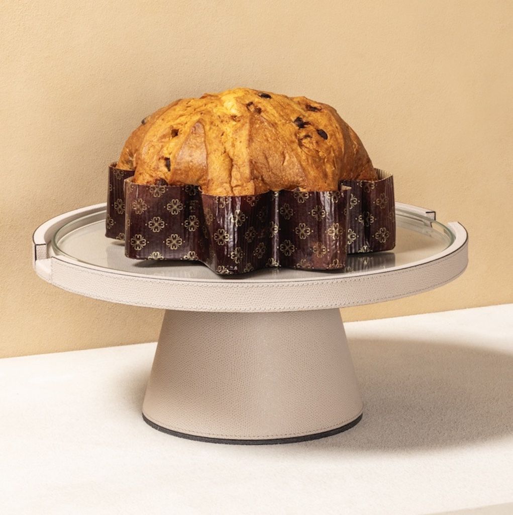 Leather-covered wood raised structure featuring a removable clear glass inner plate.