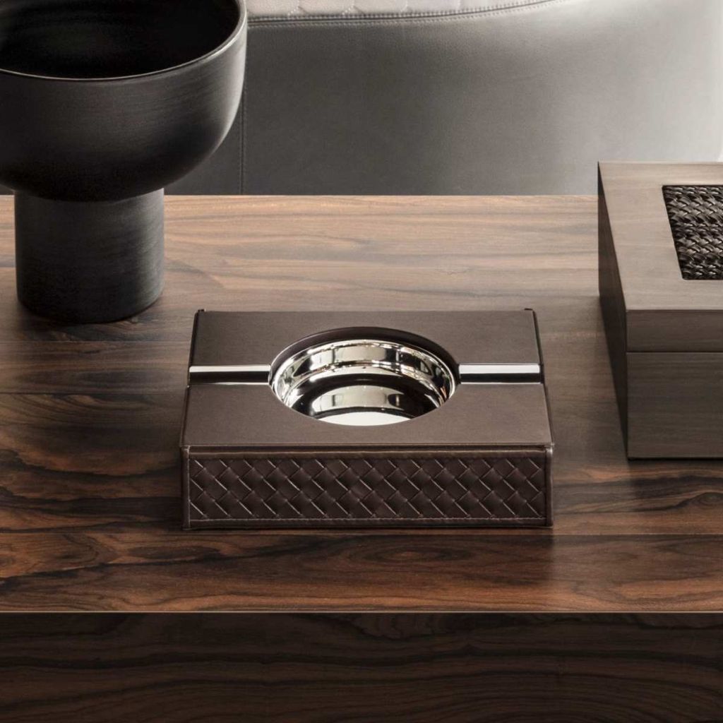 Cigar ashtray, handwoven leather.