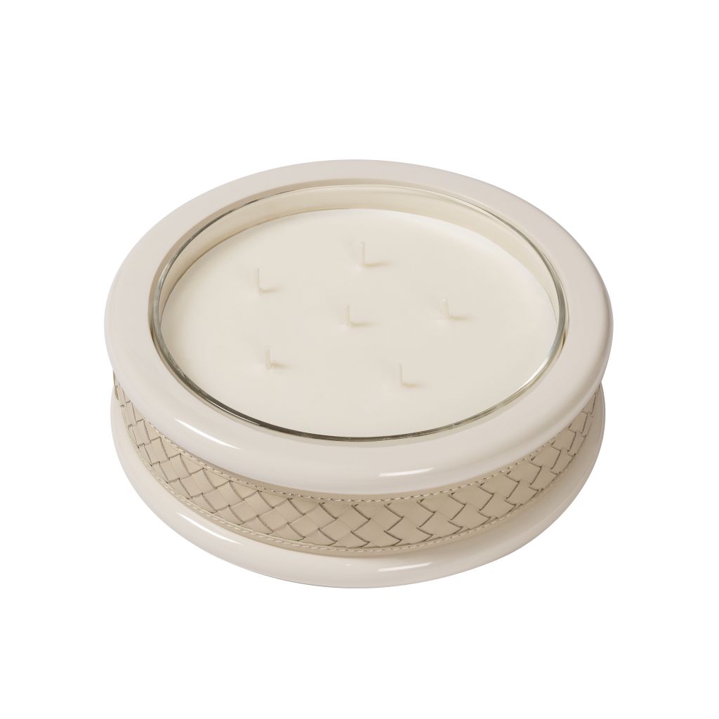 HANDWOVEN LEATHER & LACQUER CANDLE HOLDER LOW LARG...