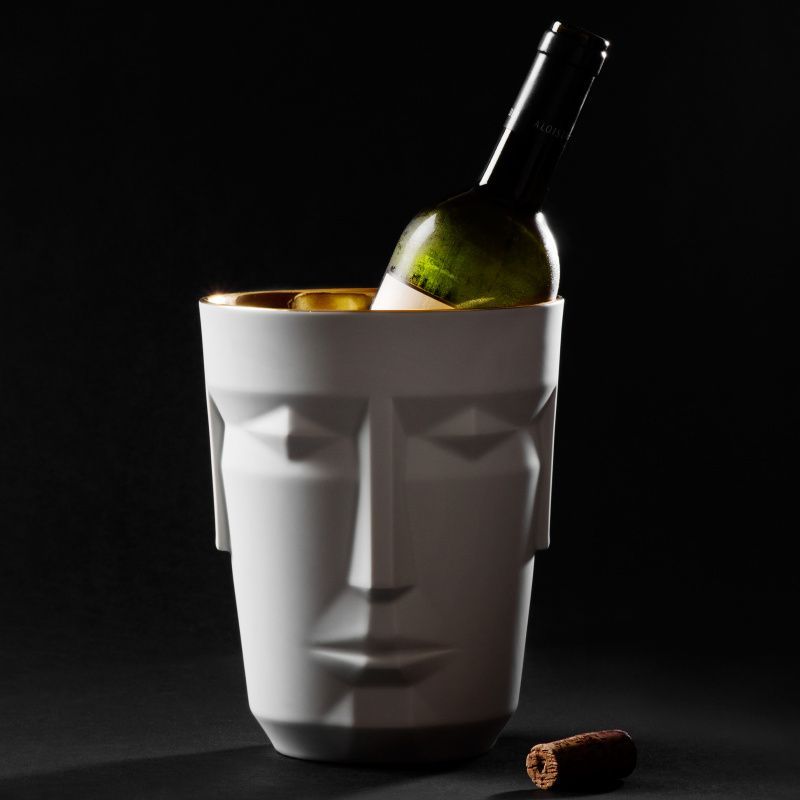 Ice bucket born from the combination of wafer-thin porcelain and the finest precious metal. Satin matt on the outside, 24 carat gold on the inside.