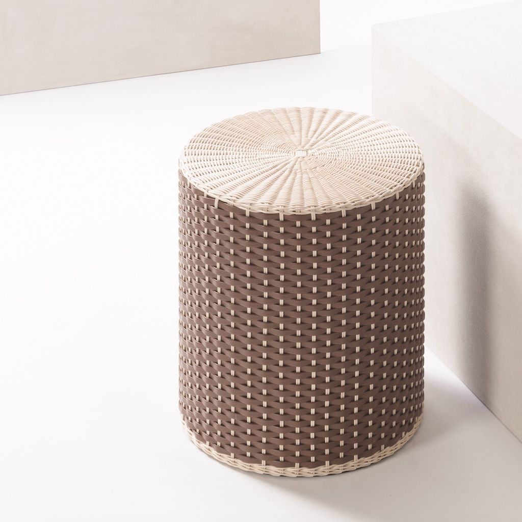 LEATHER & RATTAN STOOL - RENOIR