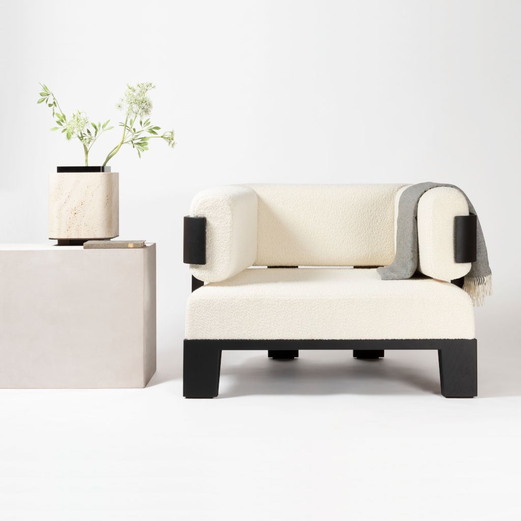 Featuring clean lines and elegantly studied details, shapes naturally blend together to create unique, iconic pieces, while the rigidity of wood meets the soft comfort of the upholstered cushions,
