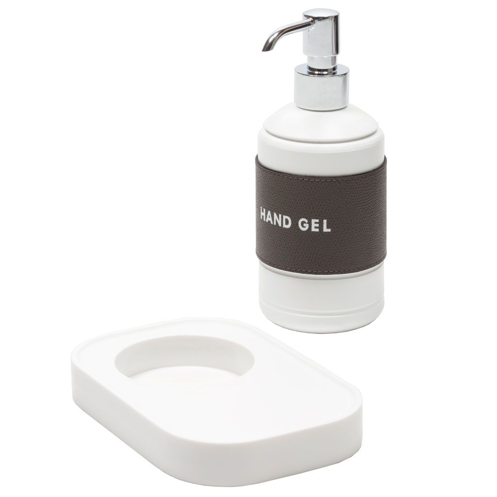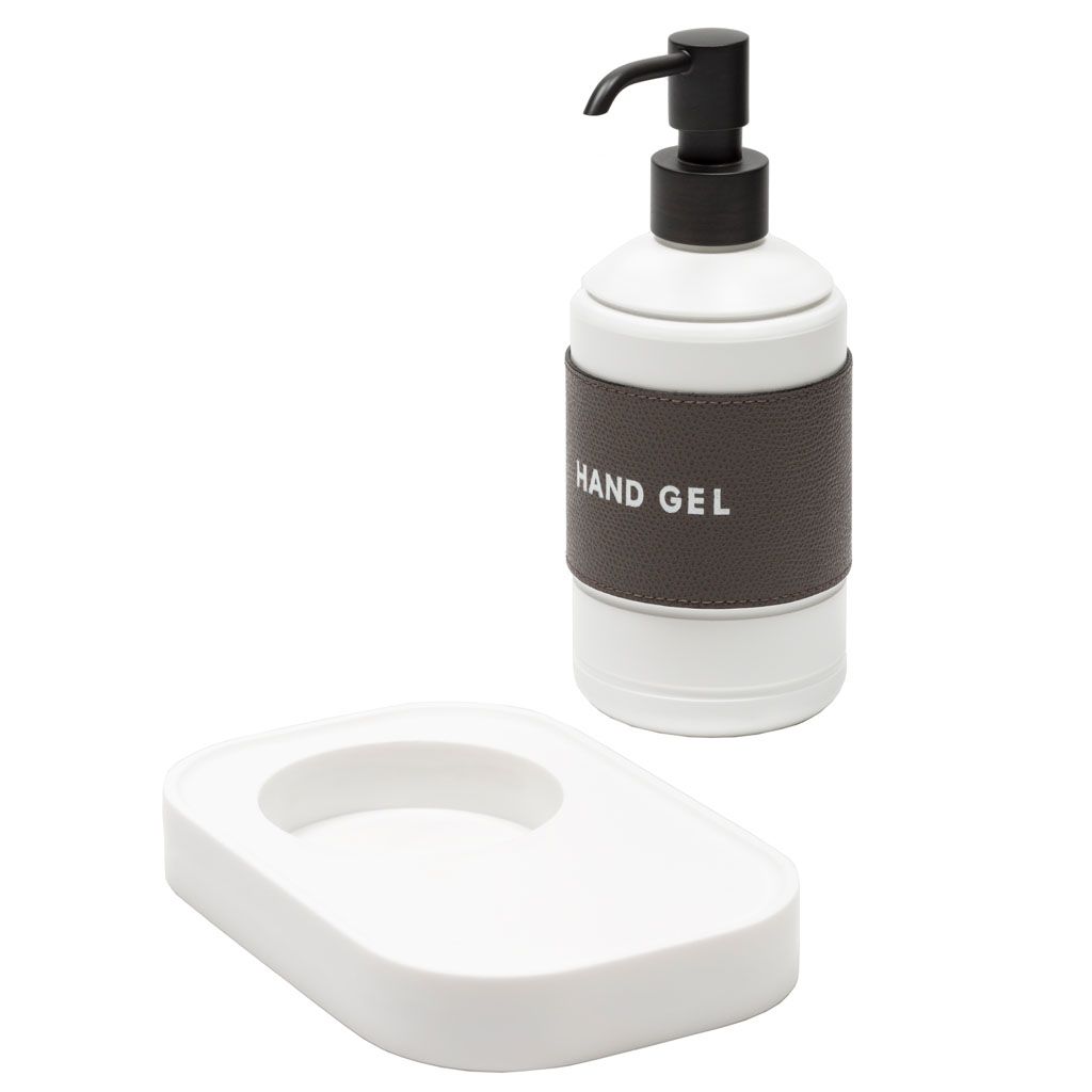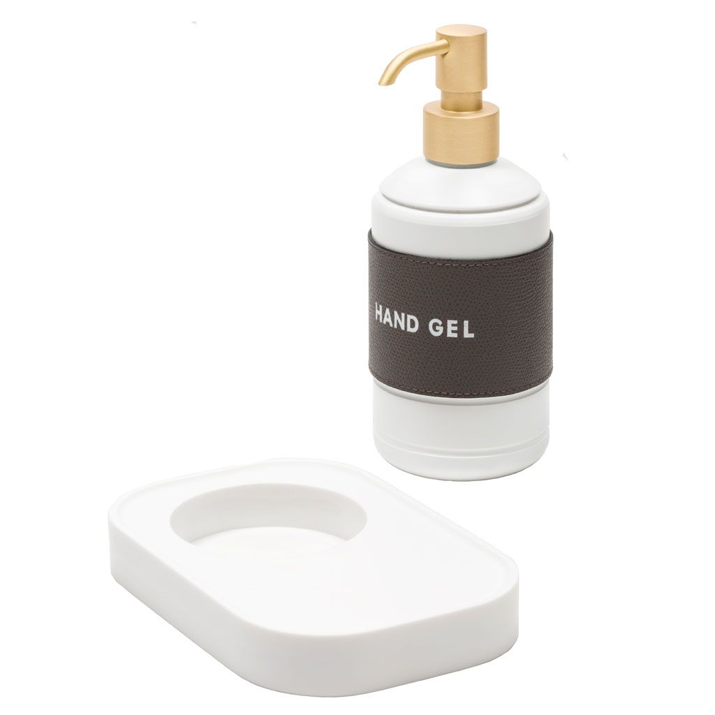 Partially dressed with the finest Italian leather, this hand sanitizer dispenser with a capacity of 500ml.