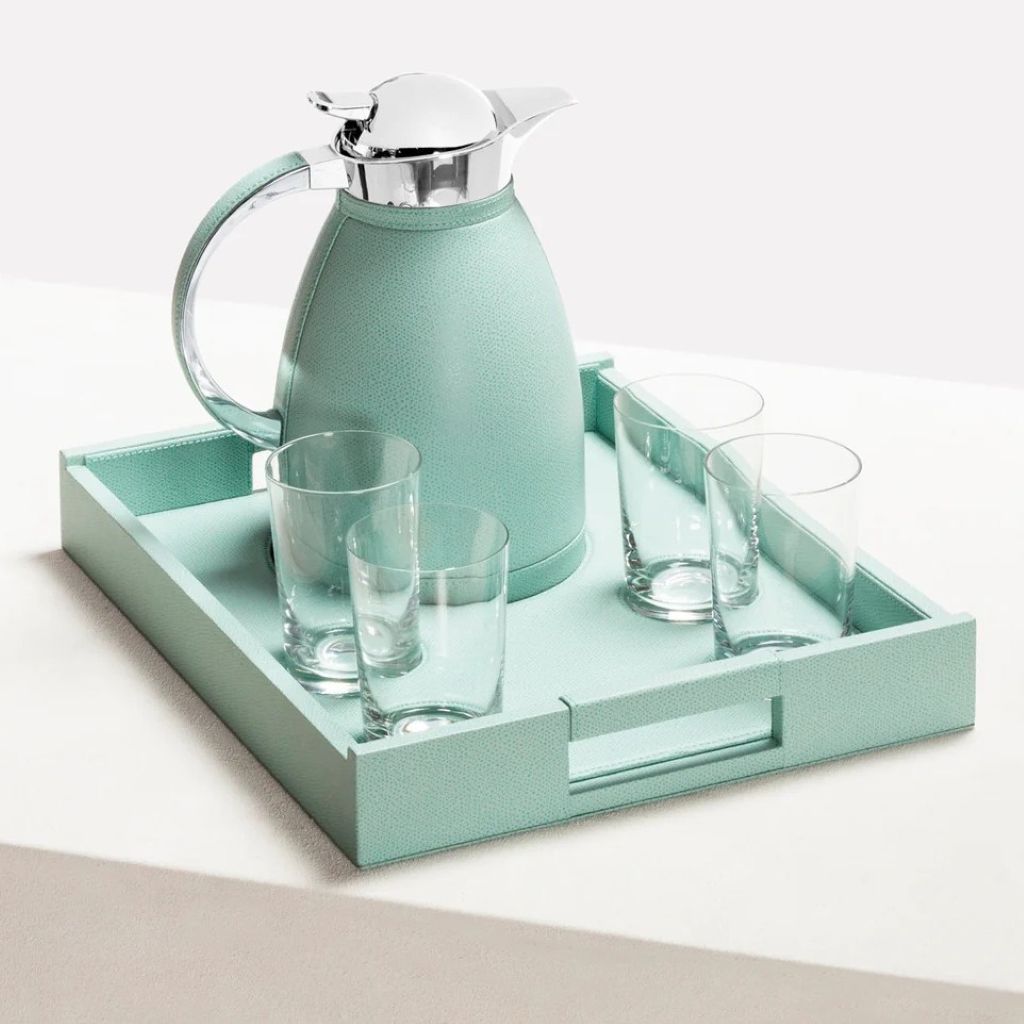 The set includes a large Beaubourg tray with spaces to host, with perfect stability, four fine crystal glasses and one carafe.