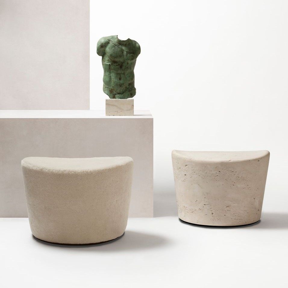 This monolithic pouf boasts elegant curves that perfectly accomodate one's body to ensure comfort.