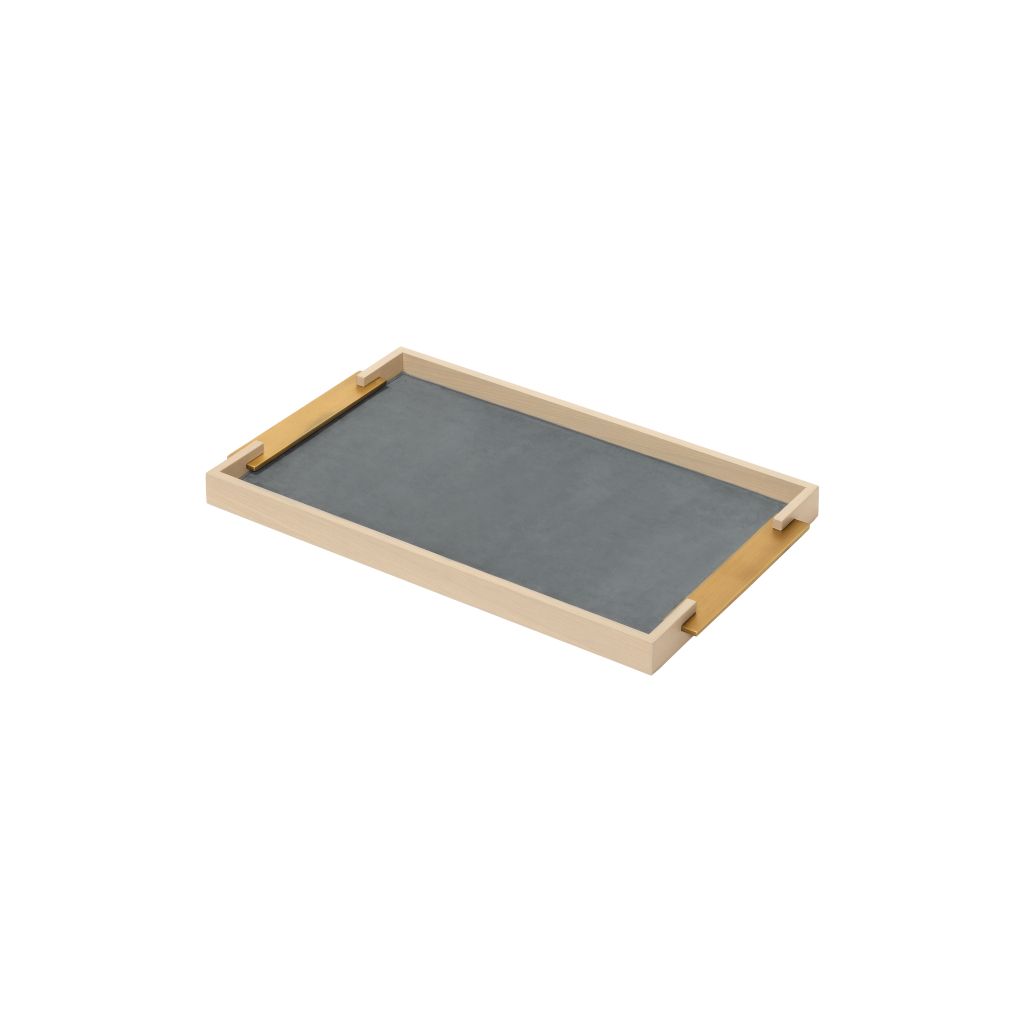 Wood structure available in two finishes with brushed metal handles. Offered in their essential wooden structure, these trays speak of clarity and balance.