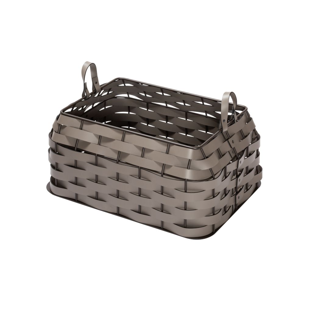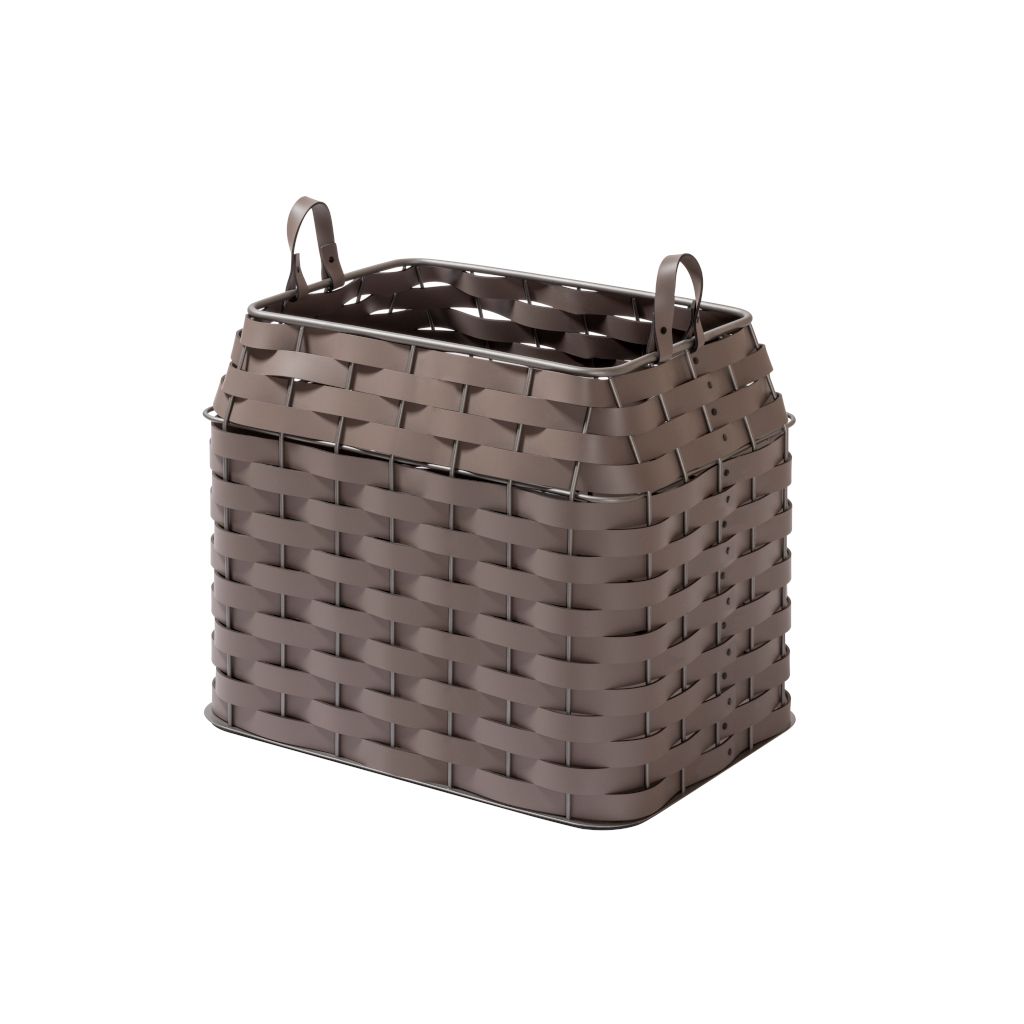 The Nassa collection is the perfect synergy of style and utility, redefining living spaces with its sophisticated allure. The framework of this series of storage baskets boasts a dark-stained aluminum structure and vibrant Tecnocuoio weaving, combining durability with contemporary elegance. This series presents more essential forms, free from superfluous curves, for a look that is pure, balanced, and timeless. Ideal for laundry, towels, magazines or everyday objects. Fit for both indoor and outdoor use. Non-slip waterproof rubber