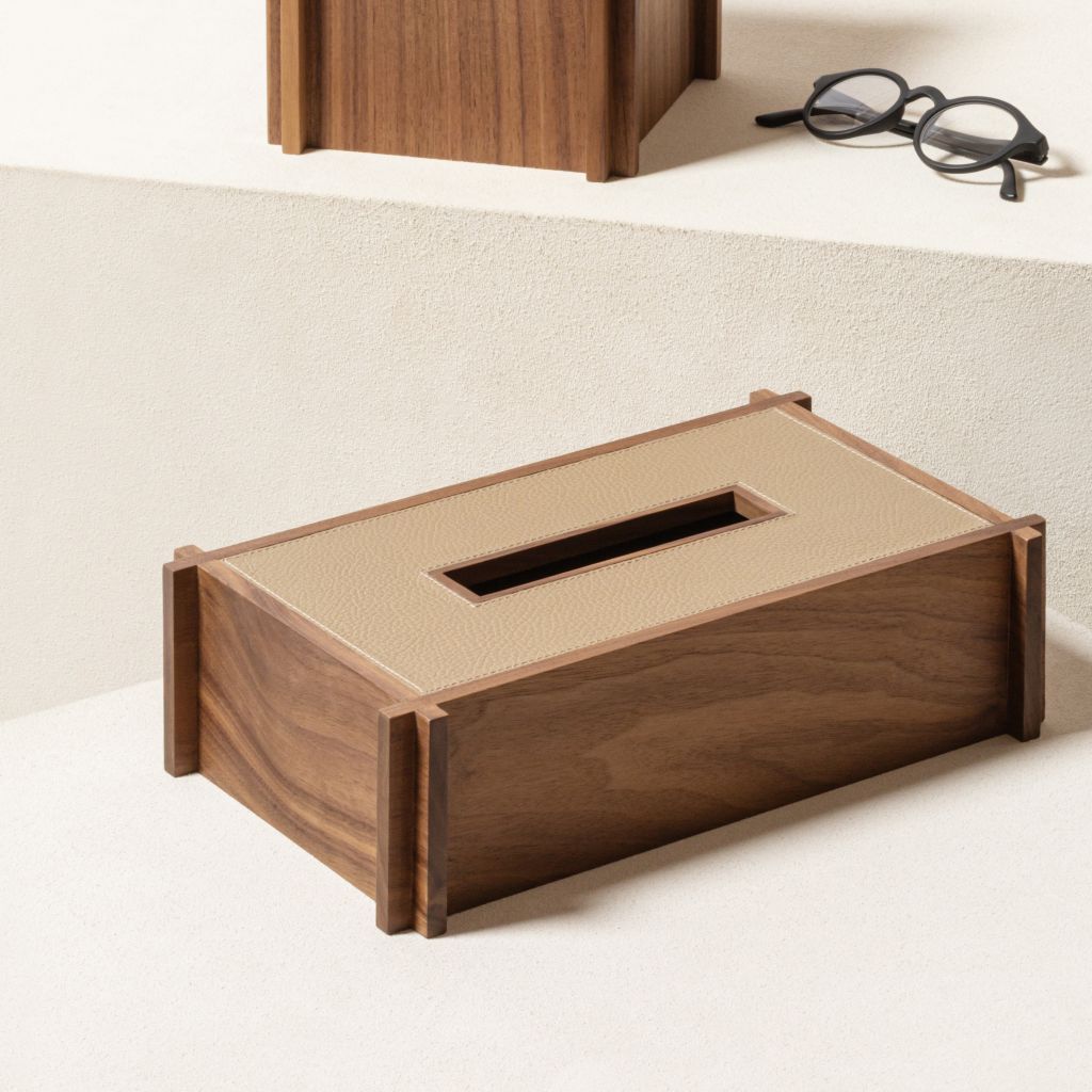 LEATHER&WOOD RECTANGULAR TISSUE HOLDER - STRUCTURA