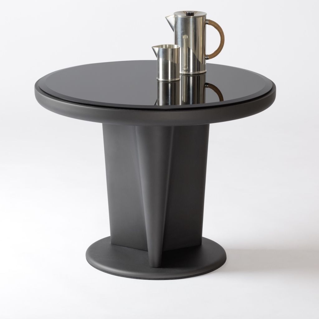 The trilobed base tapered downwards accompanies the gaze toward the top making this table not only an iconic piece, but an ideal display unit as well.