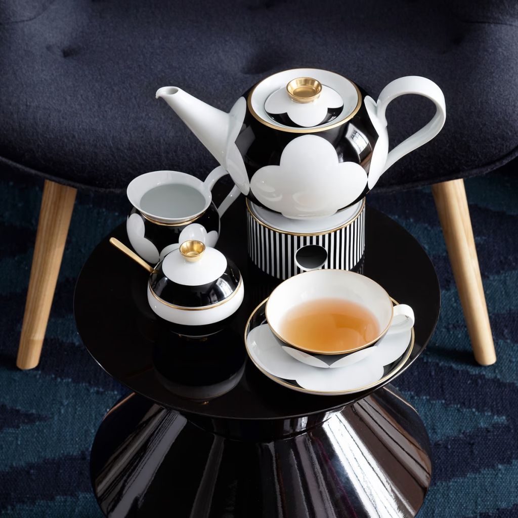Teapot with tea strainer, born from the combination of wafer-thin porcelain and the finest precious metal.