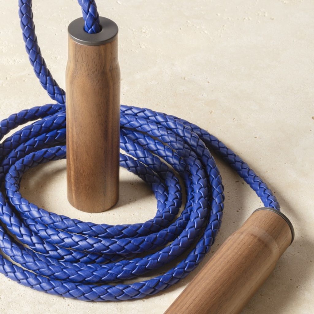 This jump rope is a sporty yet stylish accessory that can be used for both home workouts and as an eyecatching decor thanks to the !nely woven leather rope.